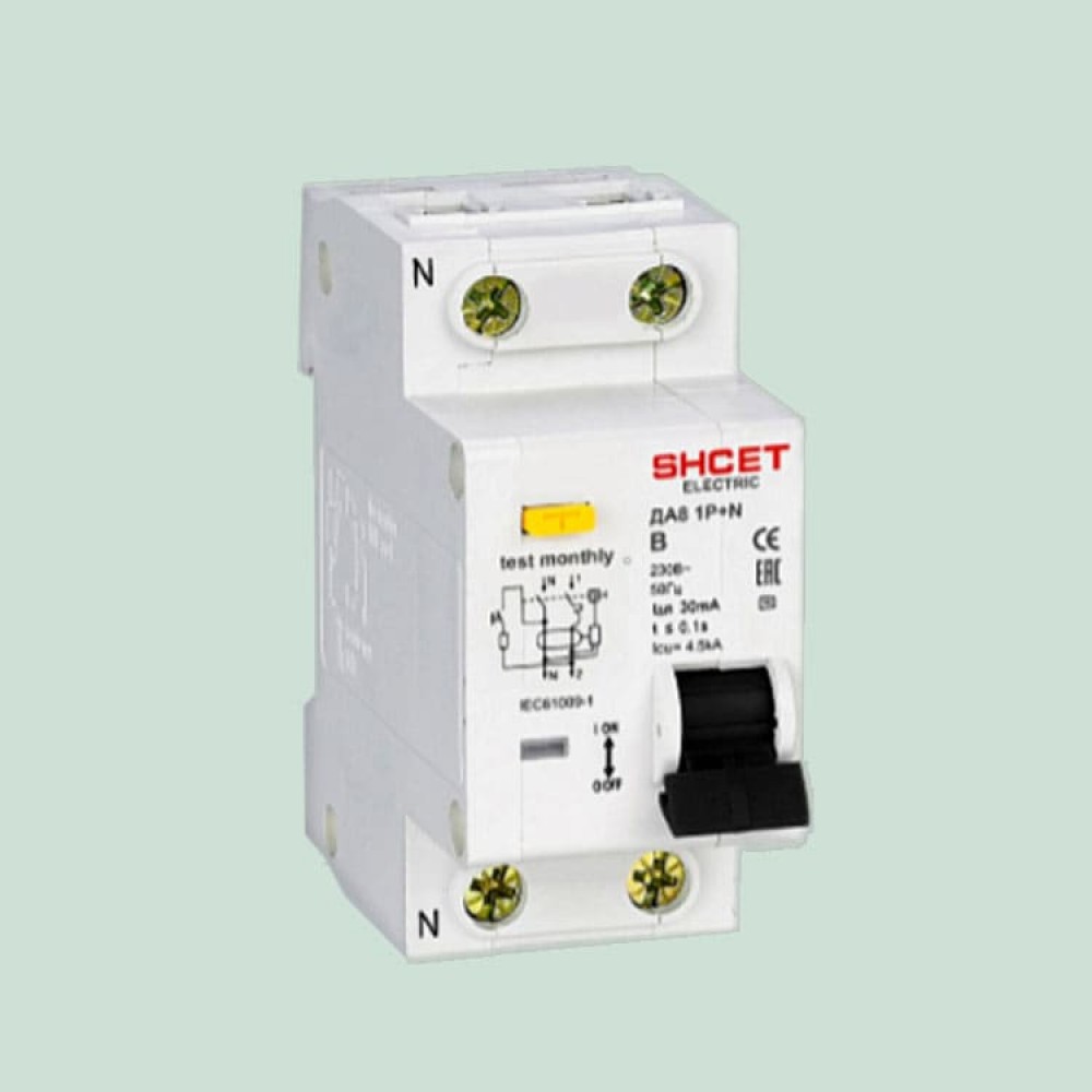 Дифференциальный автомат (дифавтомат) ДА8 1P+N 63А 30мА под шину SHСET предназначен для обеспечения безопасности и предотвращения возгорания: при повреждении изоляции проводника; при появлении тока утечки; защита электрических установок от перегрузок и коротких замыканий.