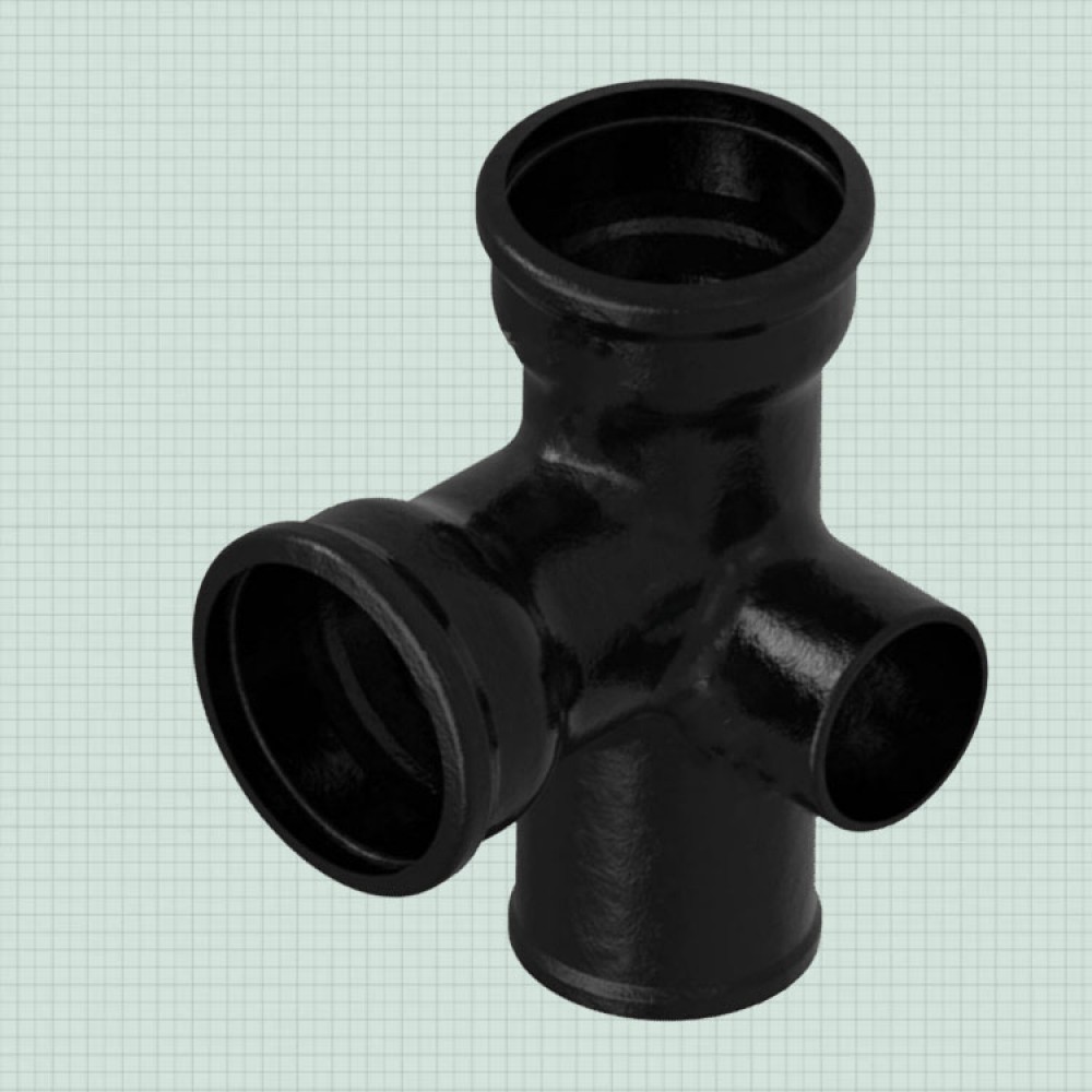 Крестовина ЧК двухплоскостная 100х100х50х90° (правая) предназначена для подключения к трубопроводу дополнительных ответвлений в двух плоскостях.